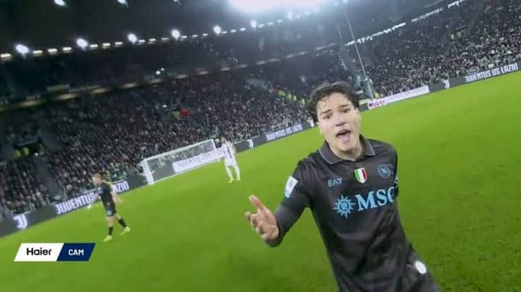 Il curioso scambio tra l’arbitro Mariani e Antonio Vergara durante Juventus-Napoli, ripreso dalla ref cam e diventato virale sui social.